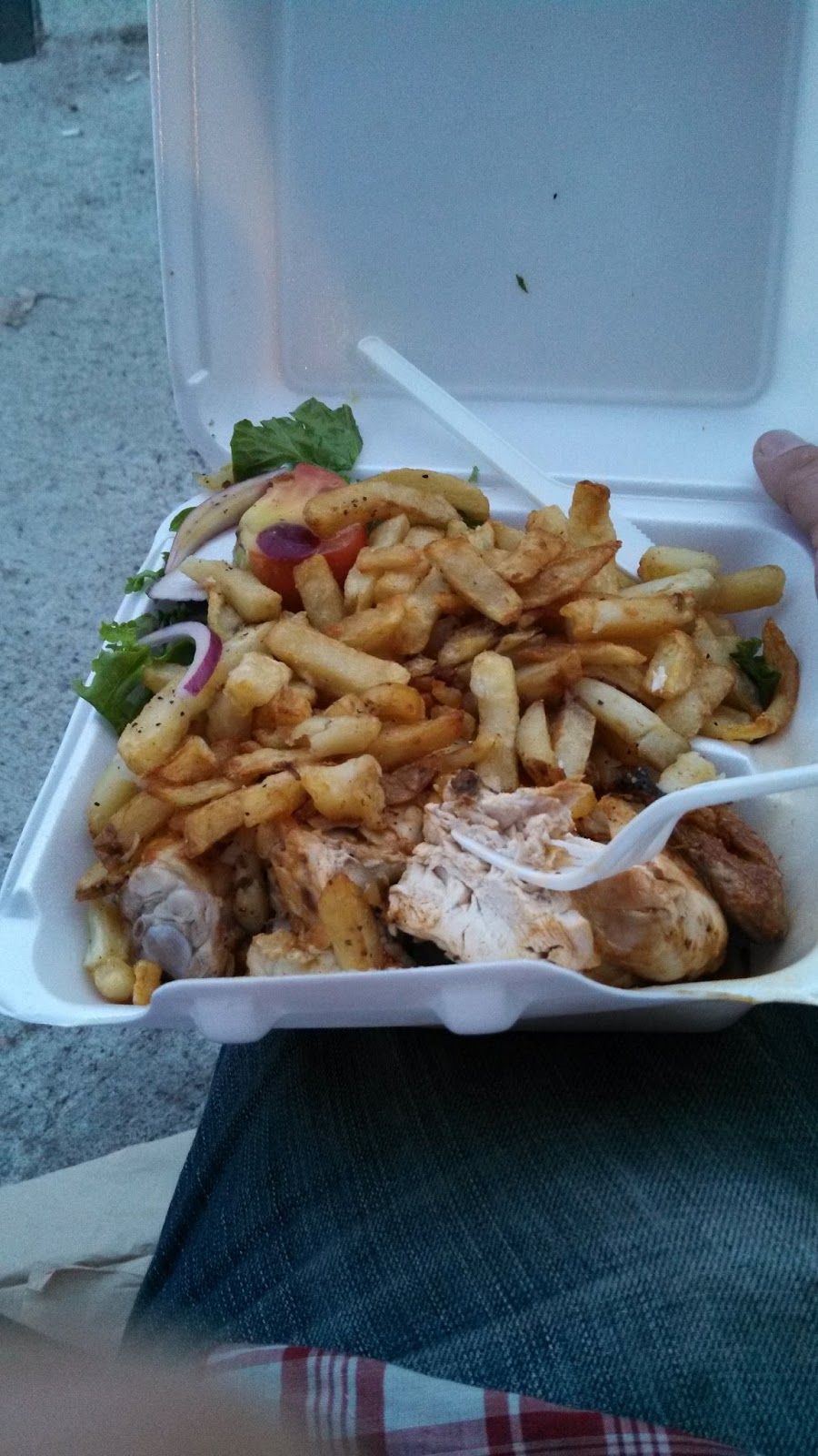 Montreal is good for food. If you don't like fancy restaurants or paying a lot, there's wood fired bagels, smoked meat sandwiches and portugese chicken. There's a half chicken under the fries, and a salad that stayed remarkably cool and crisp for being buried under all that fat. This is the $8 half chicken combo. They had rows of chickens turning over coals in their kitchen, and a line way out the door that we walked right by simply because we'd called ahead.